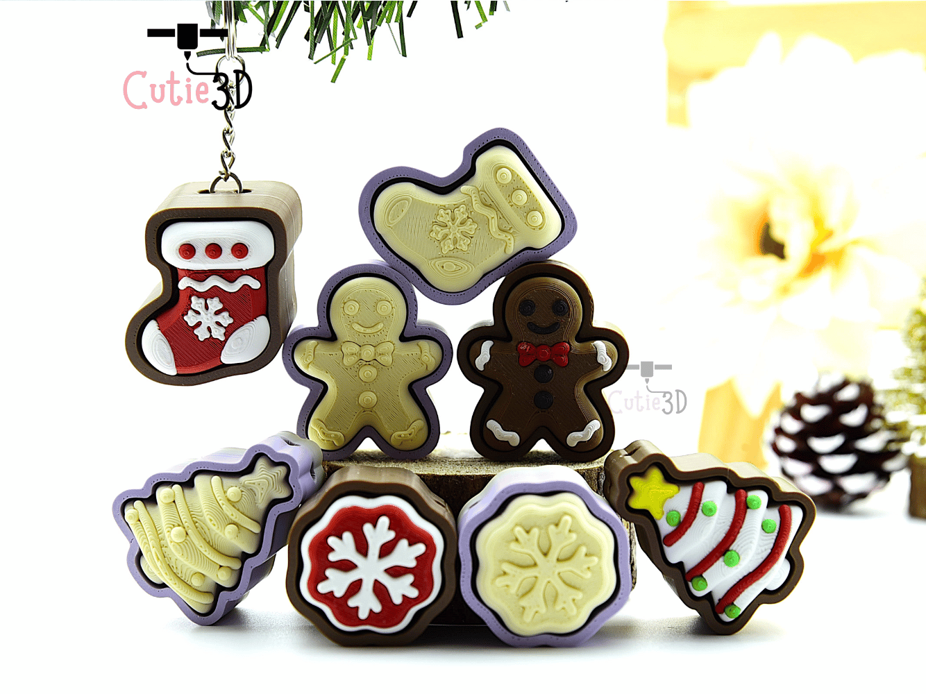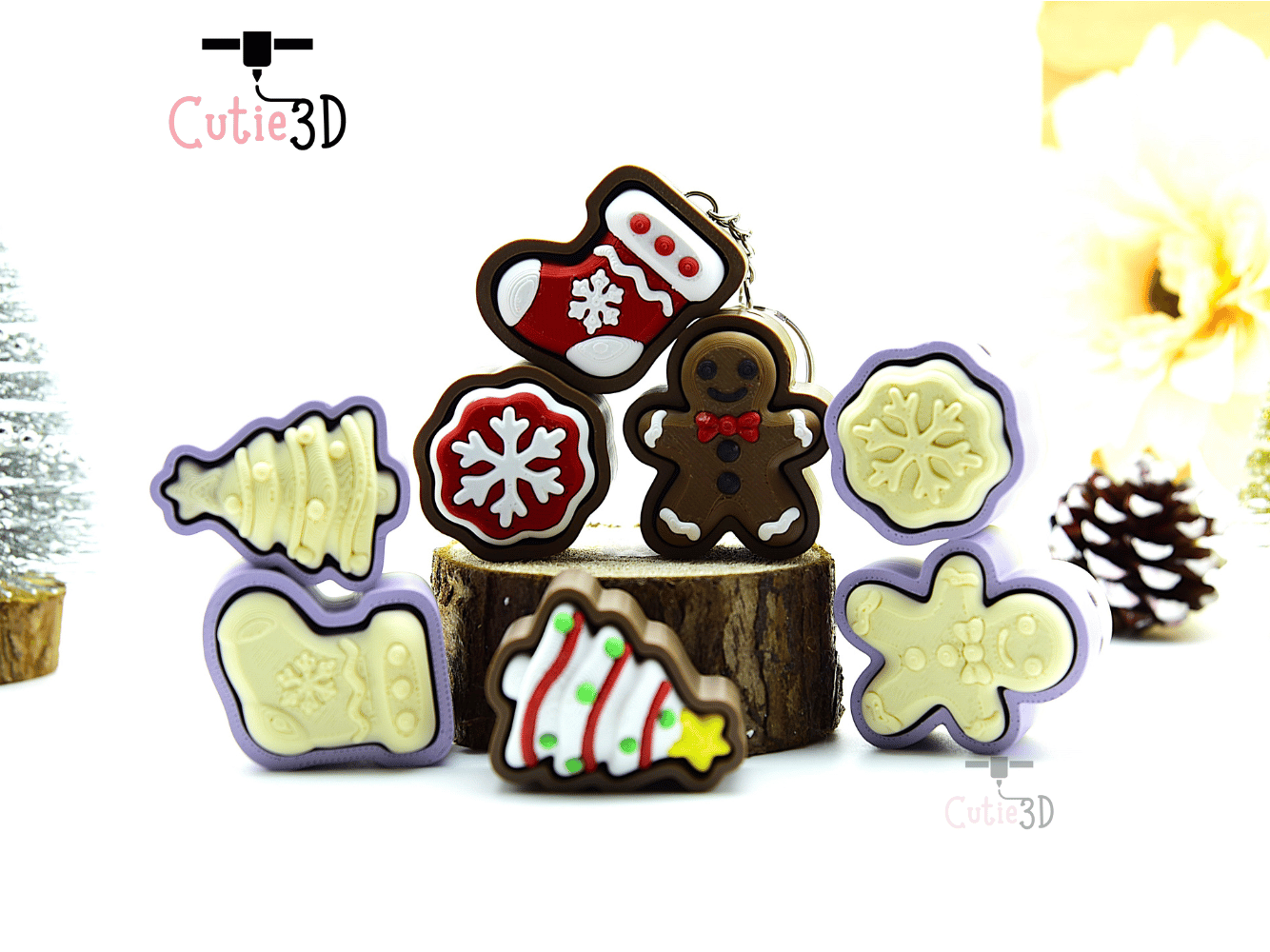 Download now to create your own adorable Cutie3D Christmas Cookie Set Set Of Keycap Clicker Keychains toy!