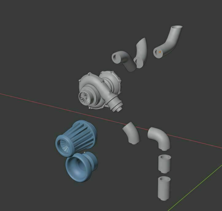 Turbocharger set with 3 exhaust tips
