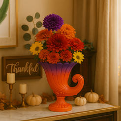 Autumn Cornucopia Vase 3D Print | Thanksgiving Centerpiece Decoration | Fall Harvest Floral Vase STL and OBJ Files | Home Decor Table Display US$ 4.72