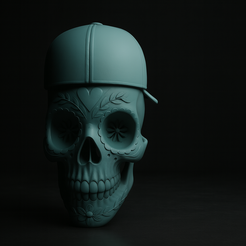 Sugar Skull with Baseball Cap – Unique Decorative Skull Art, Day of the Dead Inspired Collectible US$ 3.99