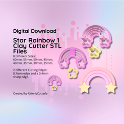 Clay Cutter STL File Star Rainbow- Kawaii Earring Digital File Download- 8 sizes & 2 Cutter Versions, cortador de galletas 3,10 US$