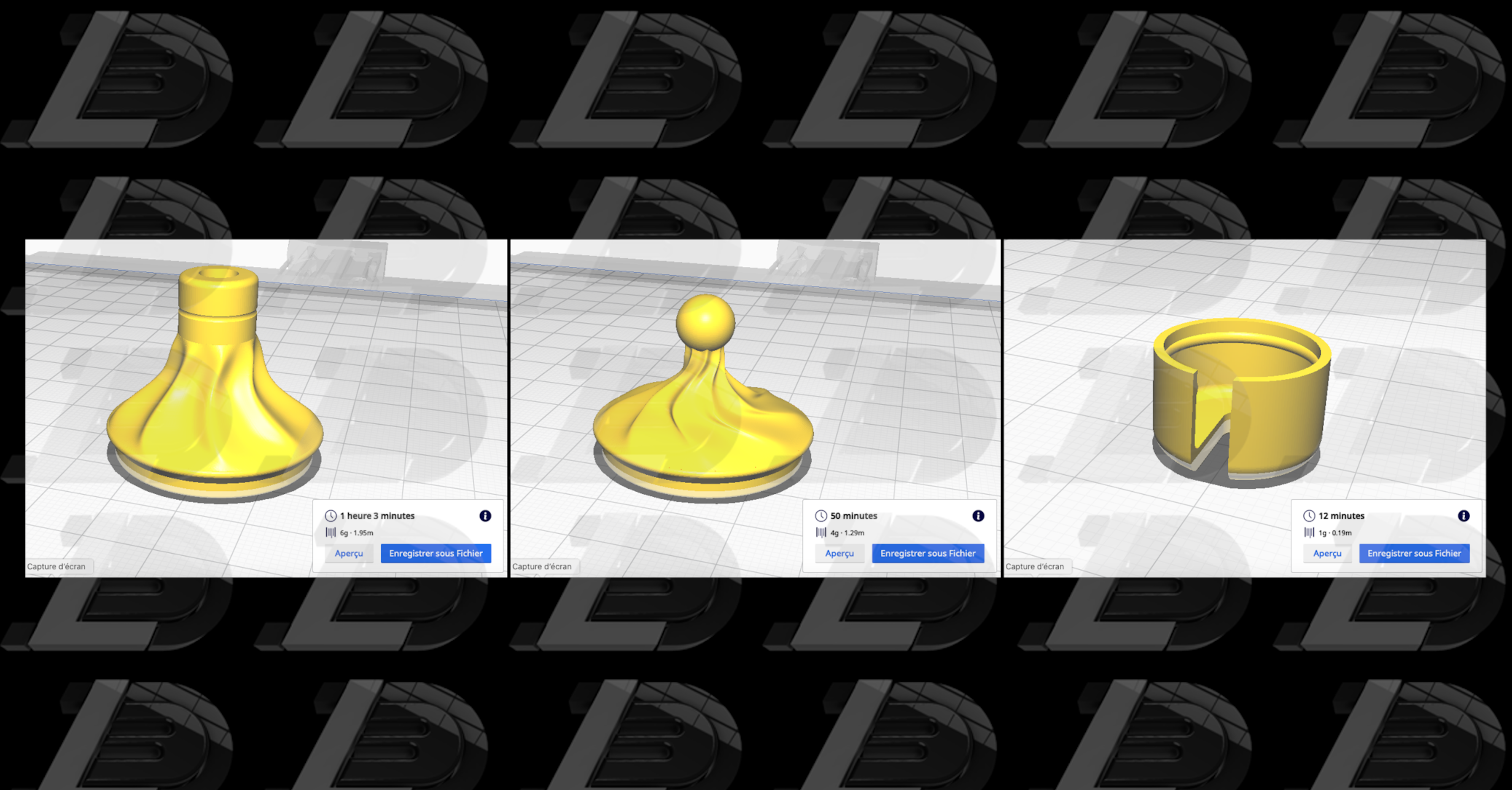 Partager et tĂ©lĂ©charger sur Cults3D câest garantir que les designs restent bien entre les mains de la communautĂ© des makers ! Et non celles des gĂ©ants de lâimpression 3D ou du software qui possĂšdent les plateformes concurrentes et qui exploitent les designs pour leurs propres intĂ©rĂȘts commerciaux.